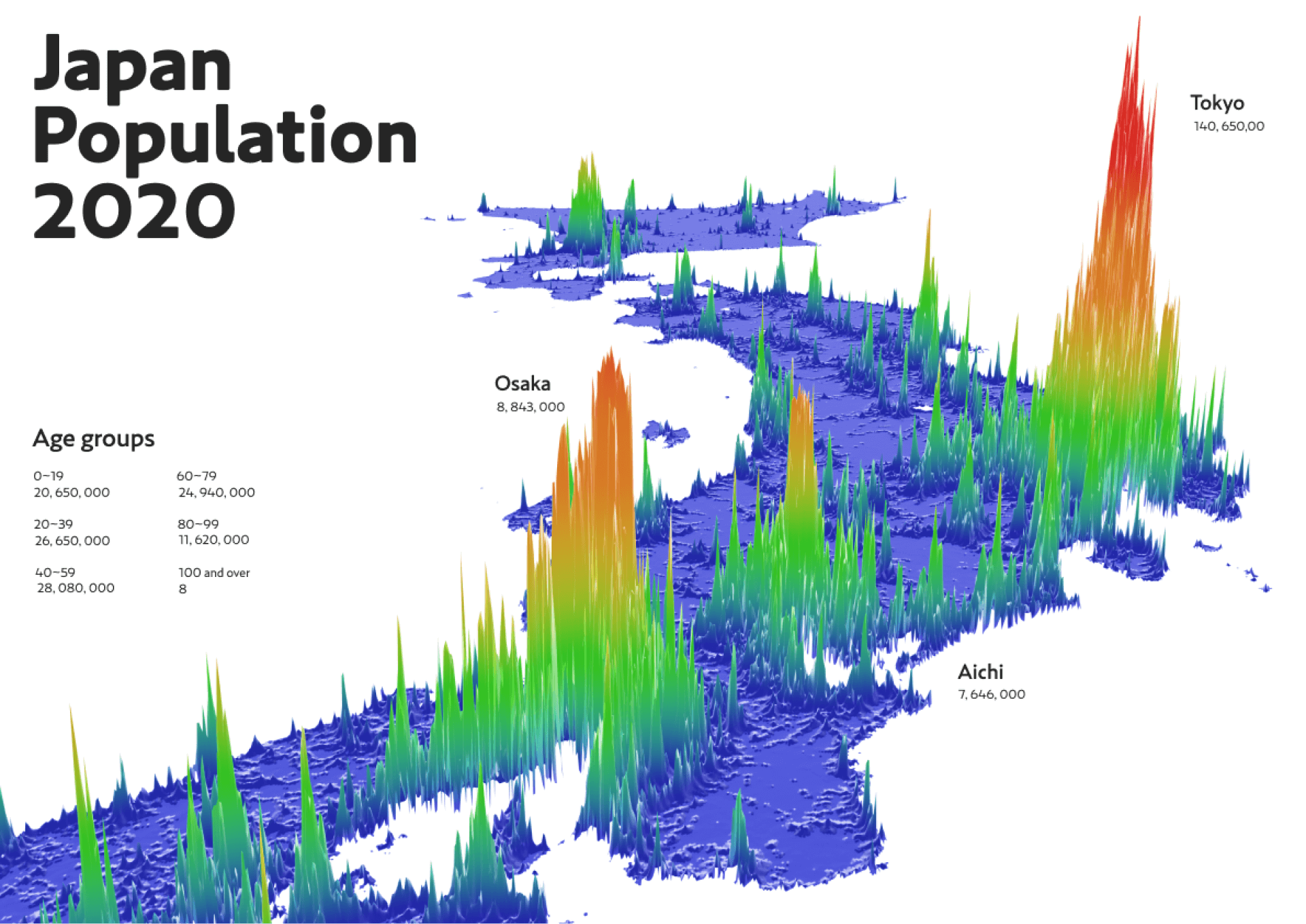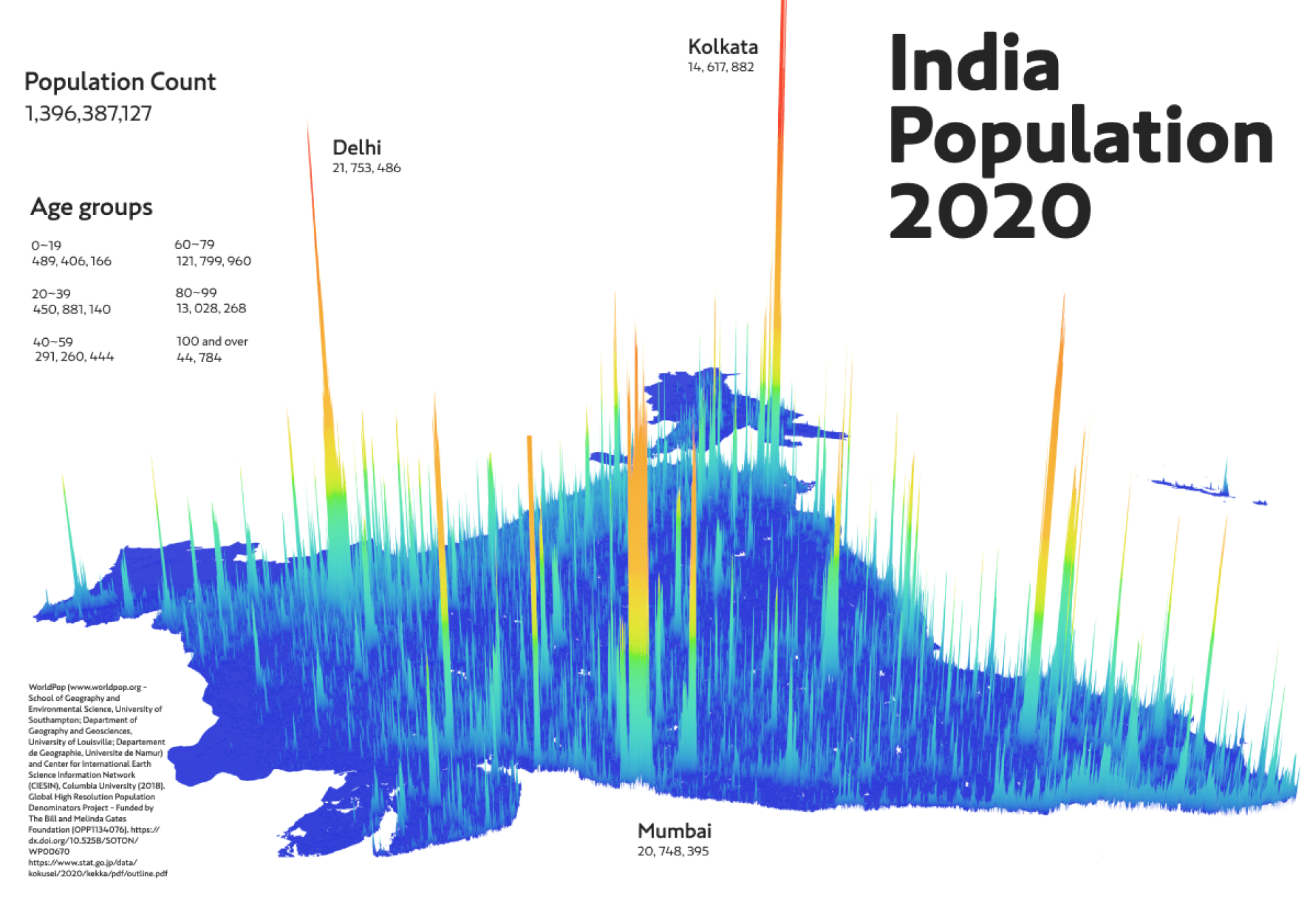geotiffデータを用いて日本とインドの人口を視覚化しました。人口を視覚化することで、山地の多い日本では平野に人口が集中していることがわかり、世界1位の人口を有するインドは都市部に人口が集中しており、都市部の人口密度が高いことが見て取れます。